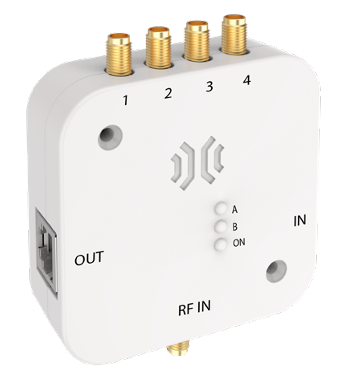 The input RF connector and the 4 output RF connectors are SMA (female).